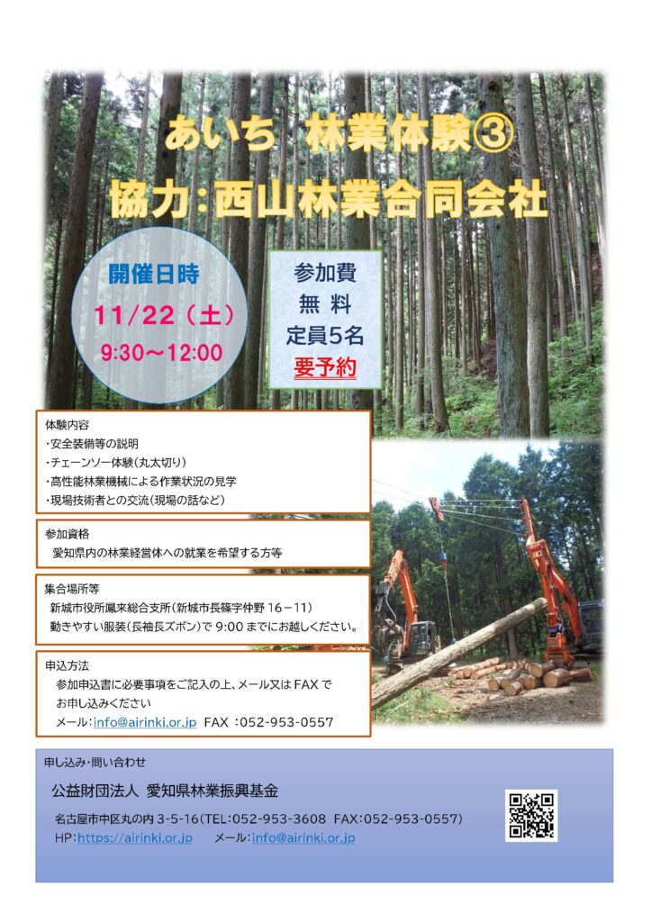 林業体験 西山林業(同) 2025年11月22日(土) 9:30~12:00