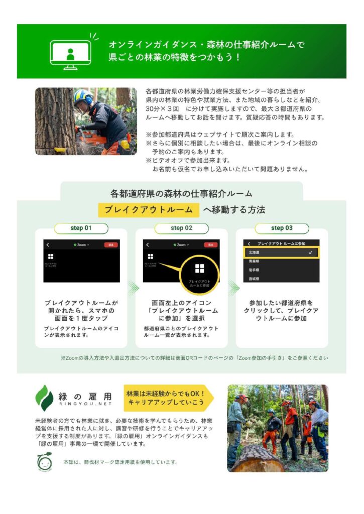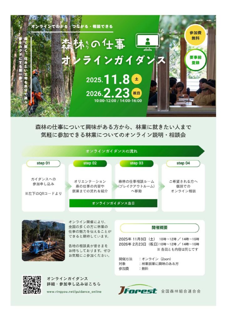 「緑の雇用」事業 森林の仕事オンラインガイダンスが開催されます。